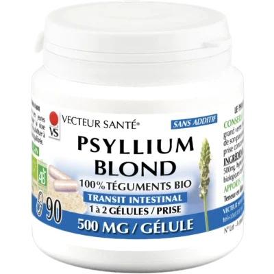 11,70 € - 20,20 €PSYLLIUM BLOND BIO GÉLULES de Vecteur Santé® – complément alimentaire à base de téguments de graines de Plantago ovata. Il est reconnu pour contribuer au transit intestinal et soutenir la fonction digestive. Fabriqué en France. -
