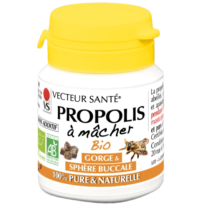 Découvrez la propolis à mâcher de Vecteur Santé®, un complément alimentaire 100% pur et biologique, conçu pour profiter des vertus exceptionnelles de ce trésor de la ruche.